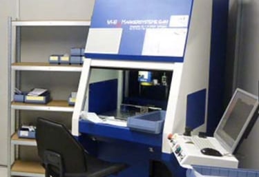 Laser markings can be produced quickly, automatically, and individually. This allows for the application of very small markings. With our validated laser systems, the UDI is verified using a camera system, and the data is archived in a database. We can also issue a certificate upon customer request.